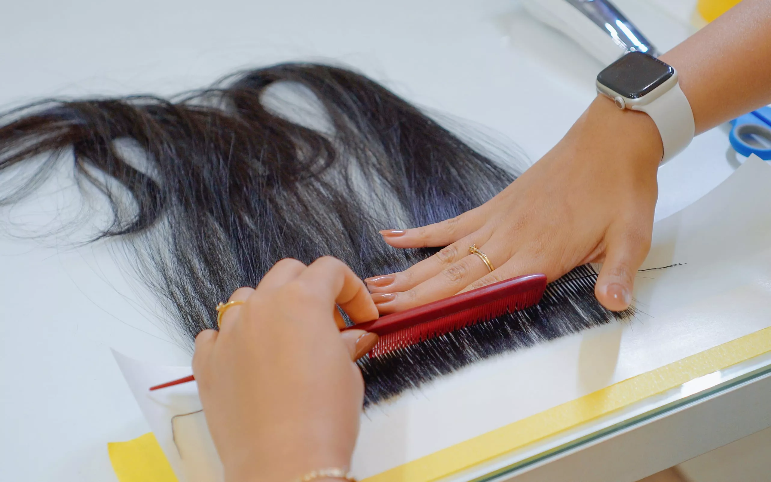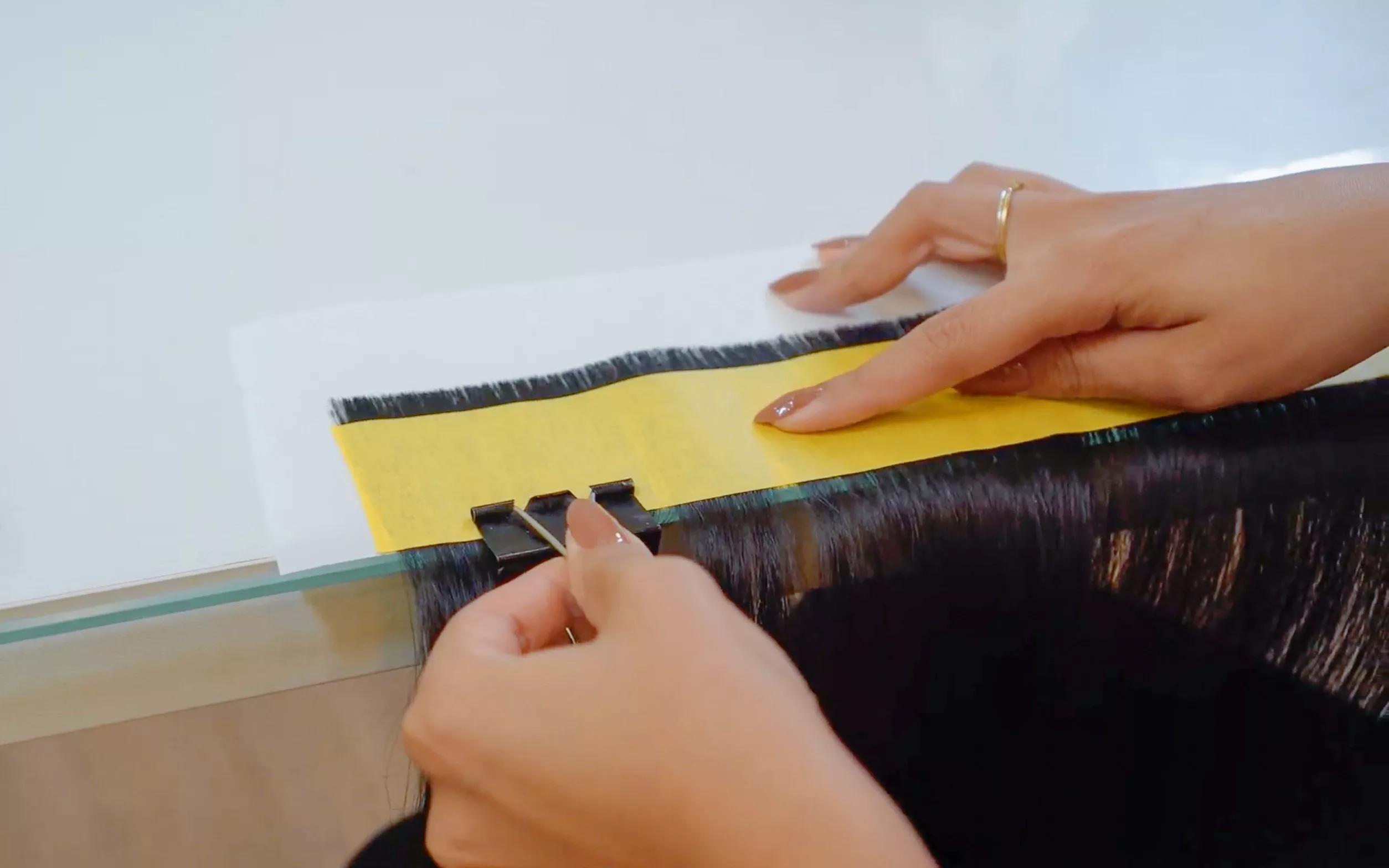 Você vai aprender o método completo de confecção da fita invisível, exatamente como é feito em salão profissional.